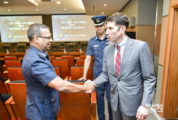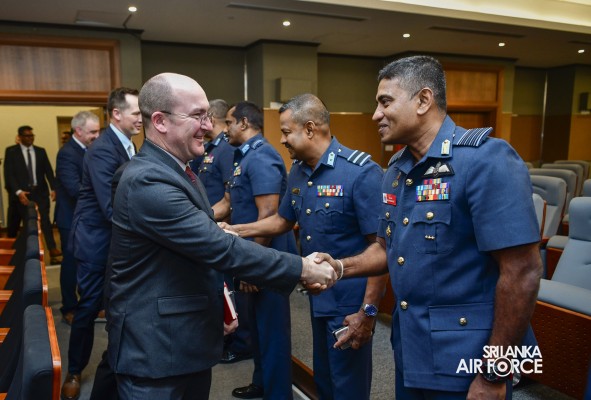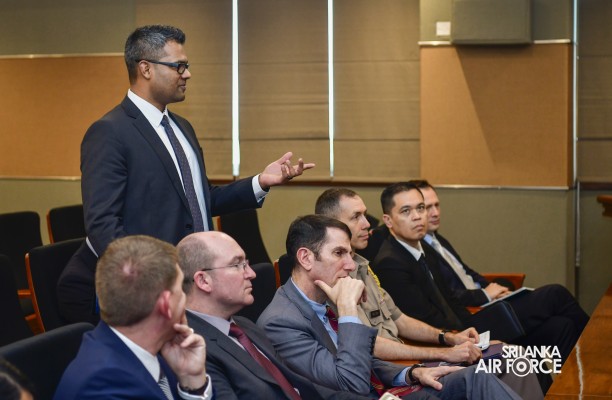 A delegation from the Air War College of the United States visited Air Force Headquarters today (05 March 2024). Leading the delegation was Colonel Adam William Hilburgh, accompanied by 13 Armed Forces Officers who are currently engaged in a Study Tour of Sri Lanka.