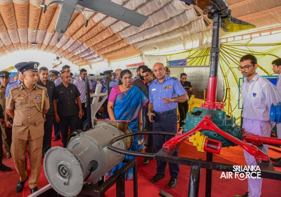 The "Air Tattoo - 2024" technological and educational exhibition, aligned with the 73rd anniversary of the Sri Lanka Air Force, was proudly inaugurated today (06 March 2024), at Muttraweli Ground in Jaffna under the auspices of the Governor of the Northern Province, Honourable Mrs. PSM Charles. The Chief of Staff of the SLAF, Air Vice Marshal Sampath Wickremaratne welcomed the chief guest on behalf of the Commander of the Air Force.