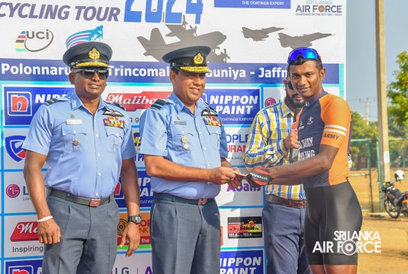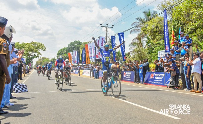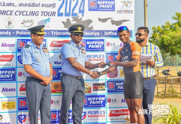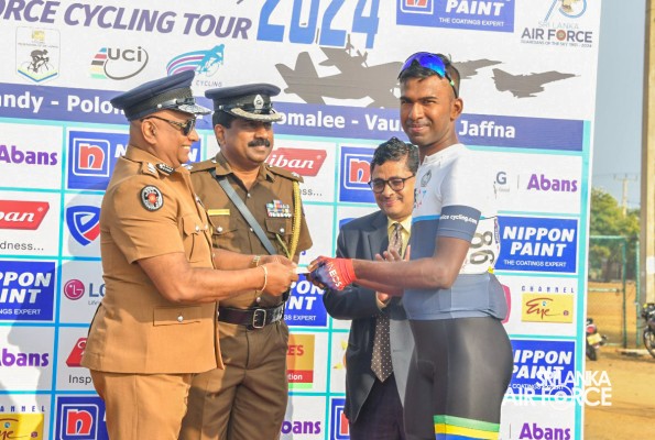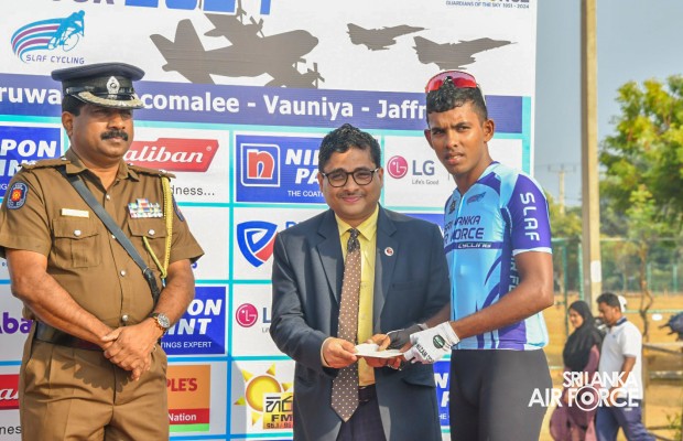 The fourth leg of the 25th Guwan Hamuda Papedi Sawariya came to an end in Vavuniya today (06 March 2024), after a challenging 139.4kilometer route. Prabash Silva, representing the Sri Lanka Navy Cyclists, emerged victorious in this stage. Following closely behind, Umesh Weerasinghe from the Kadirana Speed Cycle Club secured second place, while Krishna Nayakodi of the Indian Air Force claimed the third spot on the race.