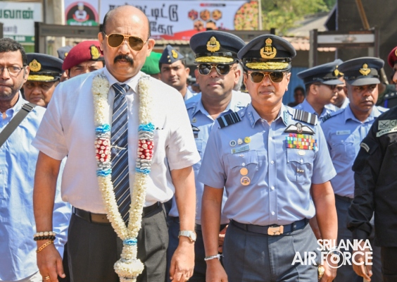 The third day of the 'Air Tattoo 2024' educational and technological exhibition kicked off today, (08 March 2024), at Muttraweli Ground in Jaffna, welcoming to the general public until 10 p.m. The Secretary to the Ministry of Defence, General Kamal Guneratne (Retd.), graced the occasion as the Chief Guest, adding prestige to the event. Air Marshal Udeni Rajapaksa, the Commander of the Air Force, warmly welcomed the Chief Guest.
