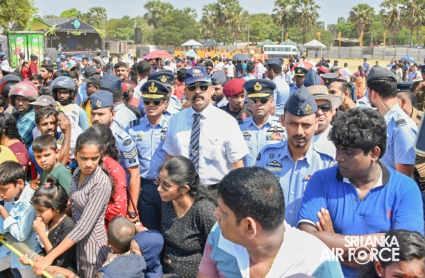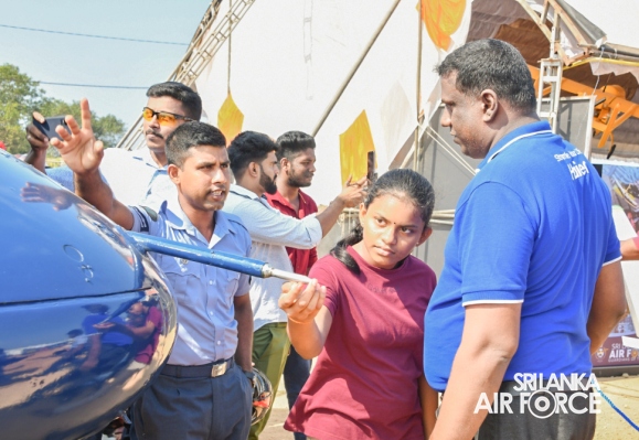 During the exhibition, schoolchildren demonstrated their enthusiasm by presenting briefings on aircraft components and other relevant topics to the Chief Guest. In addition to that, the cadets from the National Cadet Corps attended and showcased their talents through a drill display, adding much glamour to the exhibition site since the first day of the exhibition. Furthermore, there was a noteworthy level of engagement and strong interest exhibited by the youth in Jaffna towards the recruitment drive organized by the Air Force.