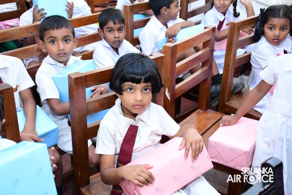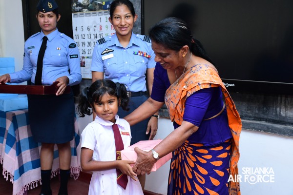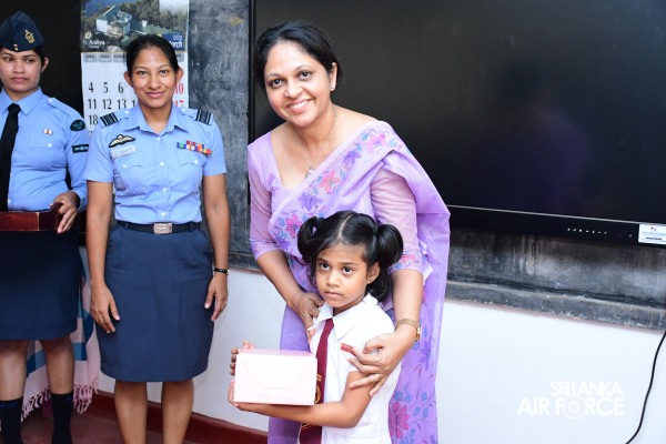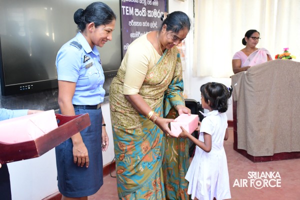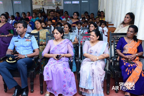 With the guidance of Chairperson Mrs. Enoka Rajapaksa, the SLAF Seva Vanitha Unit arranged this donation programme, through which 33 pairs of school shoes were donated to needy children at the school. The programme was conducted with the blessings of a well-wisher and through the "Husma" plan. The event was attended by members of the Seva Vanitha Unit, the principal, teachers and students.