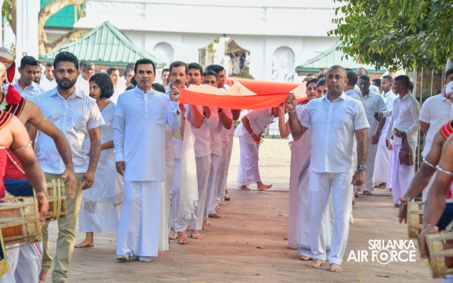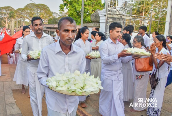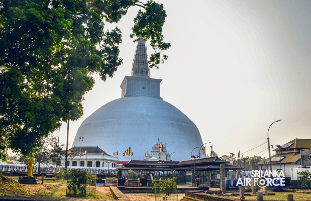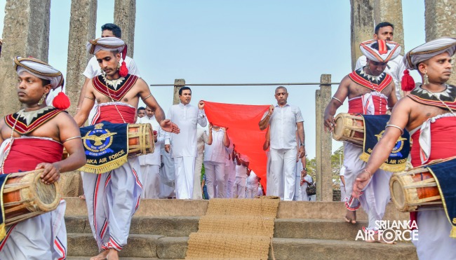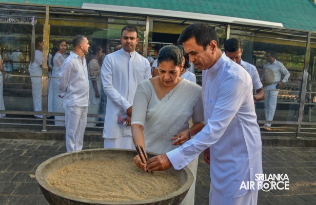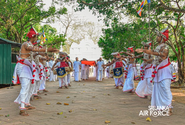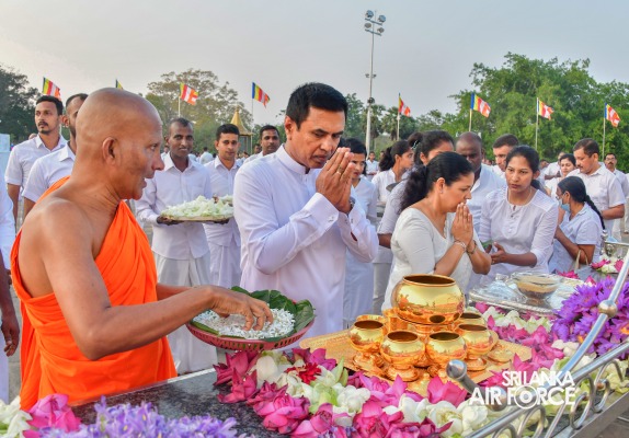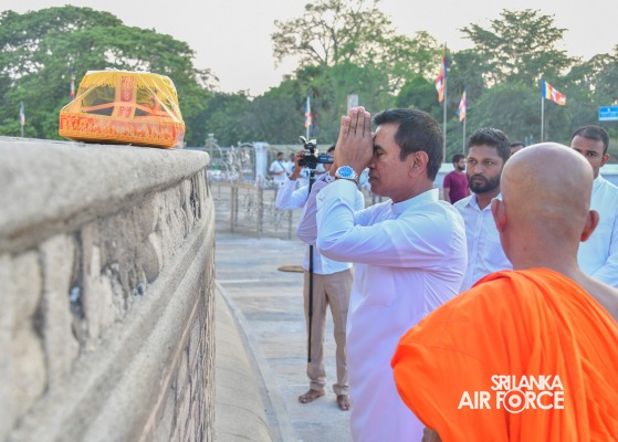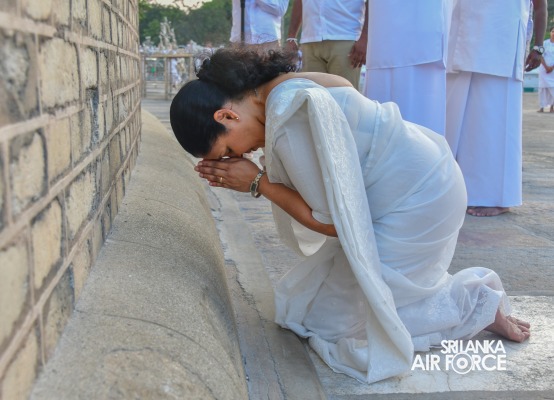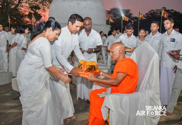 The SLAF Seva Vanitha Unit conducted a “Kapruk Pooja” invoking blessings for the SLAF in parallel with the celebration of its 73rd Anniversary. This religious event was held yesterday evening (14 March 2024) at the sacred Ruwanweliseya under the auspices of the Commander of the Air Force, Air Marshal Udeni Rajapaksa, and the Chairperson of the SLAF Seva Vanitha Unit, Mrs. Enoka Rajapaksa. The event was hosted by the SLAF Seva Vanitha Unit with the assistance of the Directorate of Welfare and SLAF Base Anuradhapura.