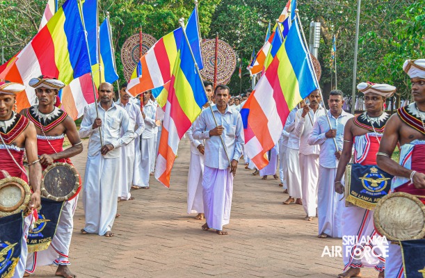 The colorful procession, made up of traditional dancers and flower offerings for the “Kapruk Pooja,” commenced from the sacred Jaya Sri Maha Bodhi premises and proceeded to the Ruwanweliseya. The Kapruk Pooja was followed by a Dharma Sermon delivered by the deputy head of the Maha Vihara Piriven, Venerable Kudagalawewa Ghanawimala Thero.