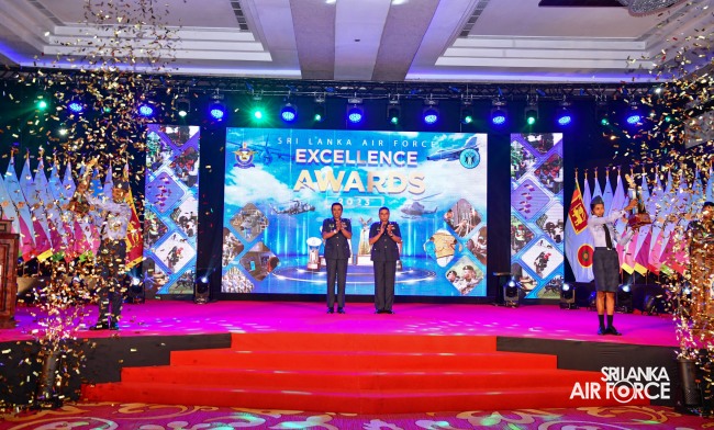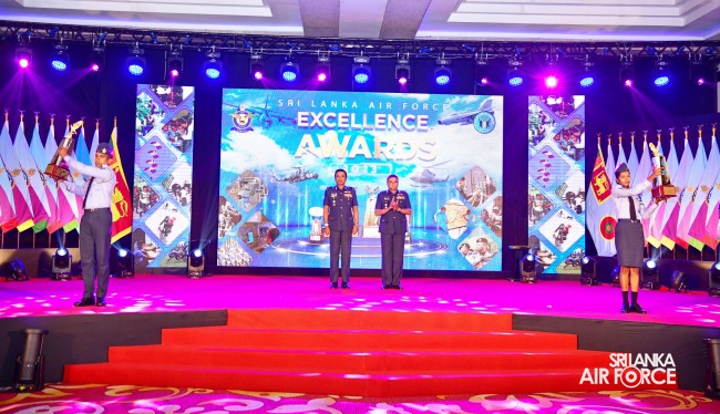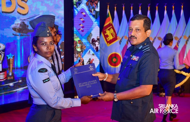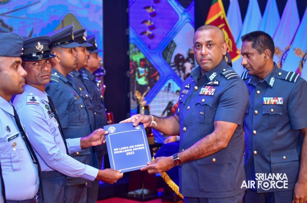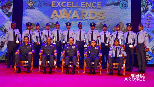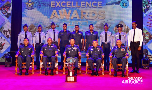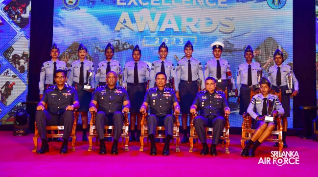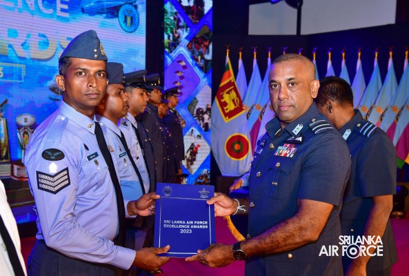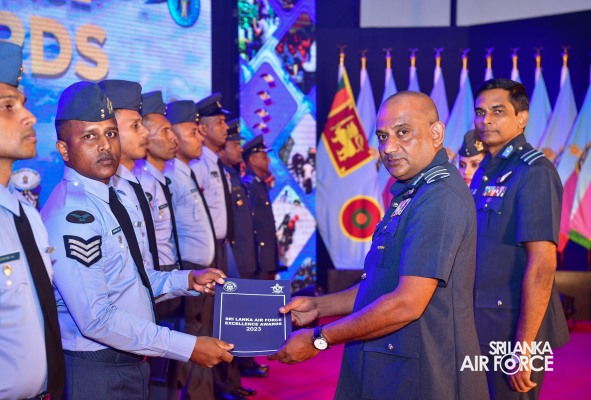 The Sri Lanka Air Force Excellence Awards 2023 was held at the Eagles’ Lagoon View Banquet Hall, Katunayake today (15 March 2024) under the patronage of the Commander of the Air Force, Air Marshal Udeni Rajapaksa. Outstanding performances of the Airmen and Airwomen within the Air Force were recognized and appreciated in order to motivate them to strive for continued excellence through dedication.