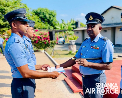 The customary Working Parade was conducted to commence the anniversary celebrations with the participation of officers and airmen/airwomen of the Wing and was reviewed by the present Commanding Officer, Wing Commander MAS Heshal. A community service project was also conducted at the Mhosu Child Development Centre.