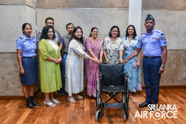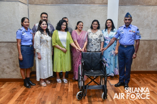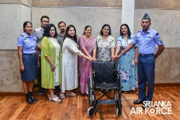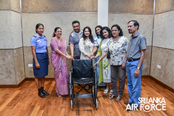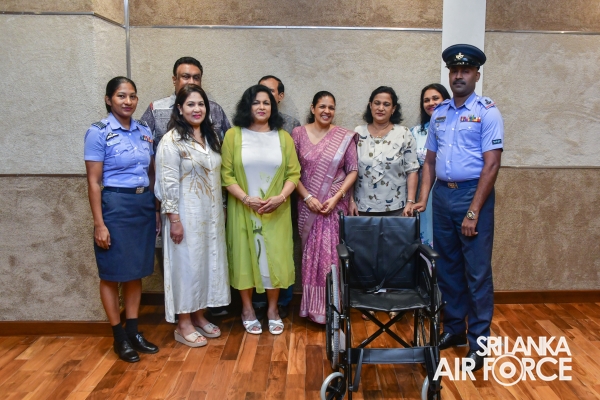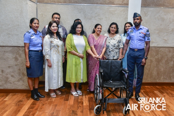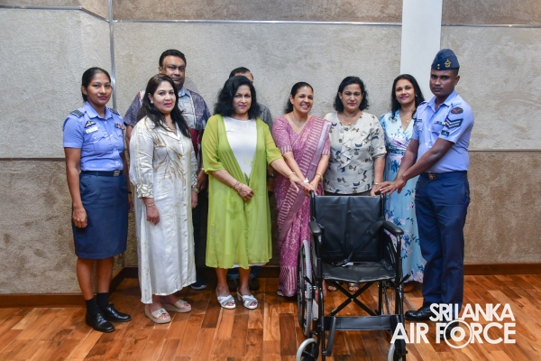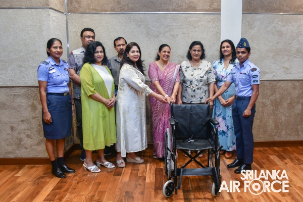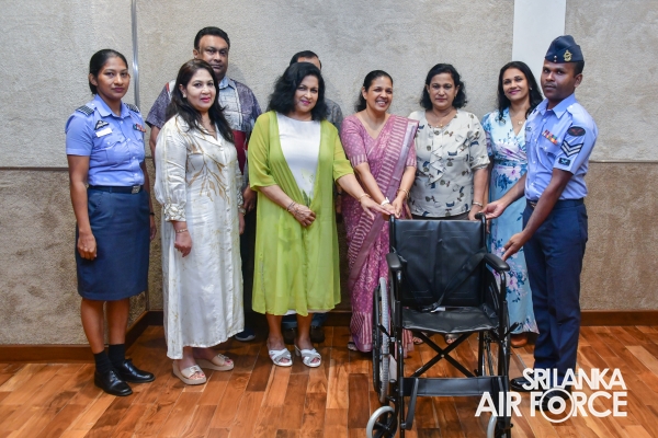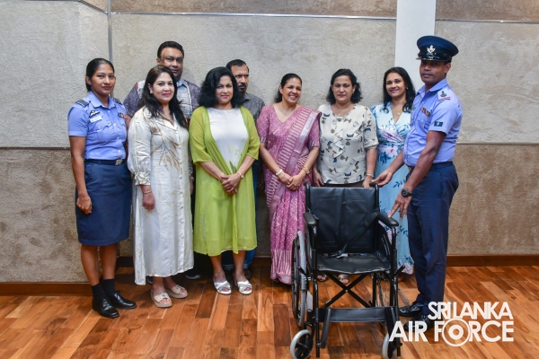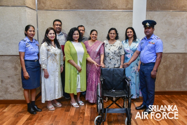A special wheelchair donation programme was organized by the Seva Vanitha Unit at the SLAF Headquarters in Sri Jayewardenepura Kotte yesterday (02 April 2024). This significant event was made possible through the generous contributions of esteemed donors Mrs. W.K. Purna Priyadharshini, Mr. Jagath Sumathipala and Mrs. Samantha Sumathipala, who collaborated with the Seva Vanitha Unit by donating ten wheelchairs for the "Husma Plan" initiative. These wheelchairs were intended for distribution among deserving family members of SLAF personnel.