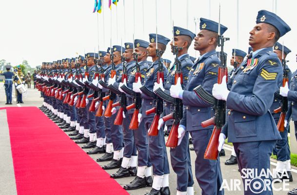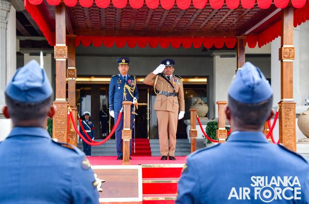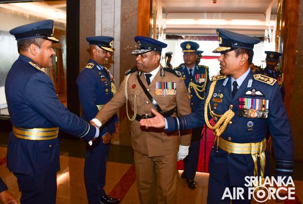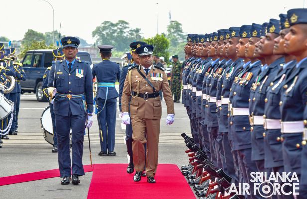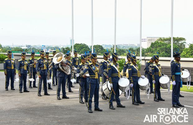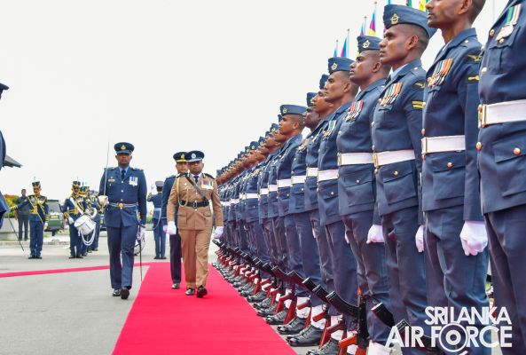 Inspector General of Police was received by the Commander of the Air Force and the Guard of Honour was conferred by the No. 43 Colour Wing of the SLAF.