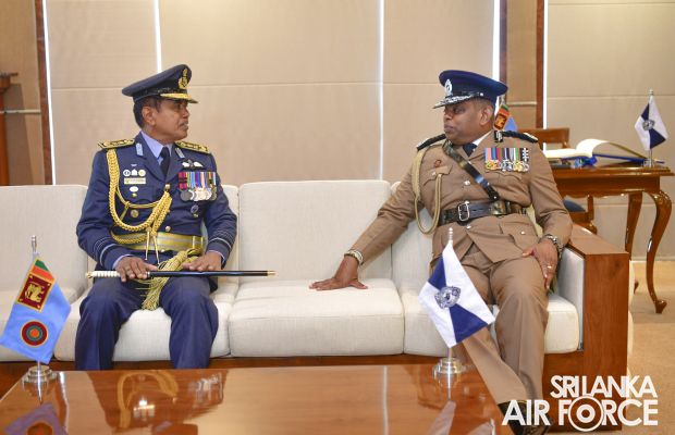 The Inspector General of Police, Deshabandu Tennakoon called on the Commander of Air force, Air Marshal Udeni Rajapaksa this morning (08 April 2024).