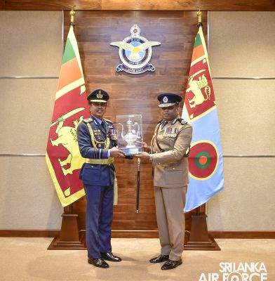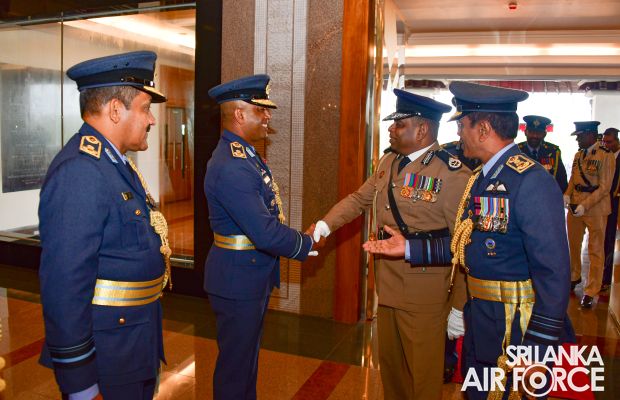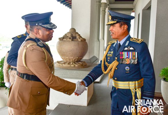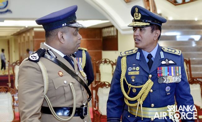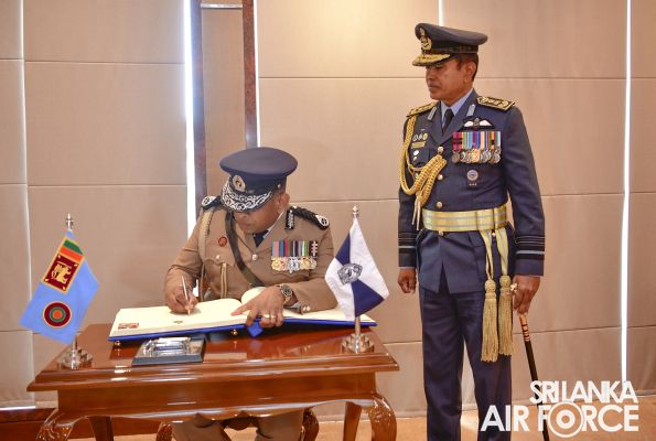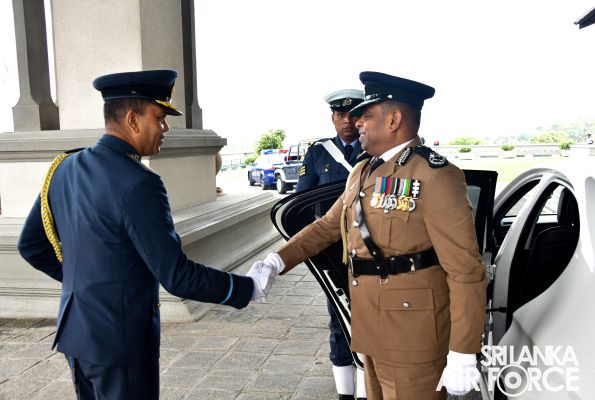 Following the customary proceedings, Air Marshal Rajapaksa and IGP Deshabandu Tennakoon had cordial discussions and Commander of the Air Force congratulated Mr. Deshabandu Tennakoon on his appointment as the 36th Inspector General of Police. Subsequently, the official plaques were exchanged between the Commander of the Air Force and Inspector General of Police at the Commander’s Office.