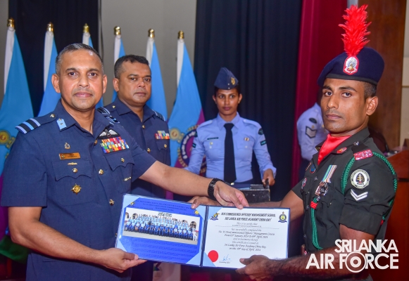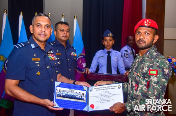 The No. 22 English Medium and No. 93 Sinhala Medium comprised 68 Senior Non-Commissioned Officers and 52 Junior Non-Commissioned Officers from the SLAF, two Junior Non-Commissioned Officers from the SL Army, one Senior Non-Commissioned Officer from the SL Navy, and two Senior Non-Commissioned Officers from the Maldivian National Defence Force. At the ceremony, 125 awardees received certificates to mark the successful completion of the courses.