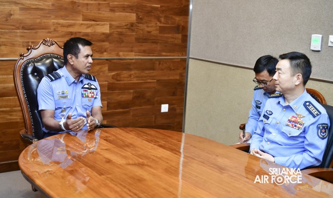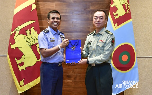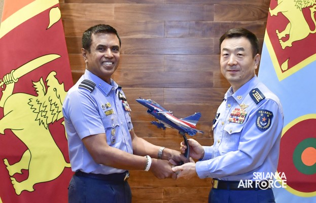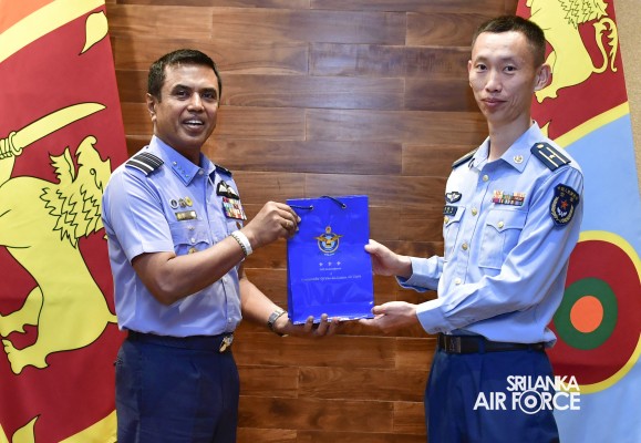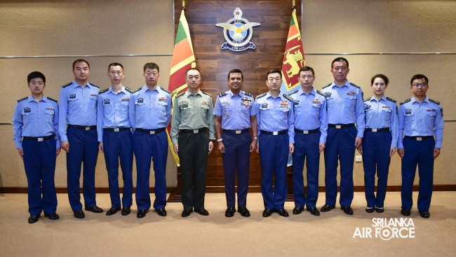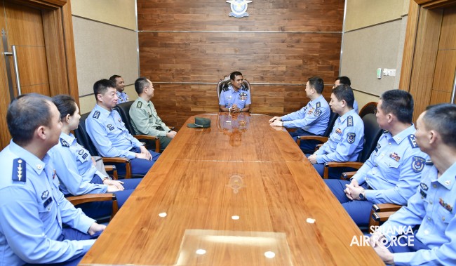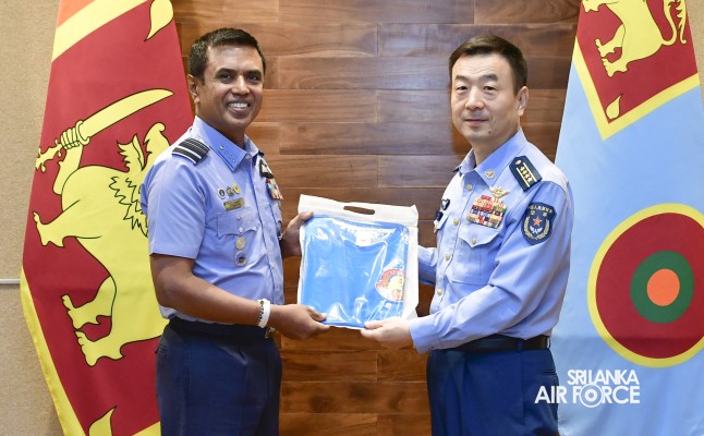 A delegation representing the People’s Liberation Army Air Force Working Group in China, led by Assistant Chief of Staff, Senior Colonel Wang Xiadong, paid a courtesy visit to Commander of the Air Force, Air Marshal Udeni Rajapaksa, at Air Force Headquarters today (26 April 2024).