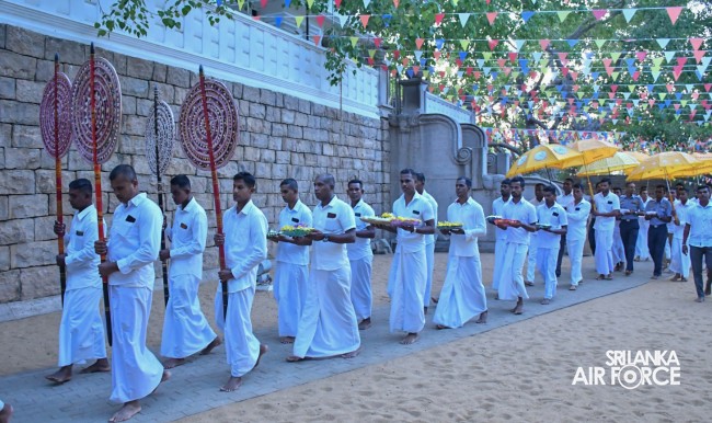 The SLAF Station Morawewa conducted the annual "Aluth Sahal Mangalyaya" to the sacred Jaya Sri Maha Bodhi premises yesterday (29 April 2024) by using harvested paddy in the 'Maha' season. The event is part of the traditional ceremony at this station after the successful completion of all paddy cultivation activities. The programme was conducted under the supervision of the Commanding Officer, Group Captain Hemantha Balasooriya. Officers, other ranks and civilian staff also participated in the event.