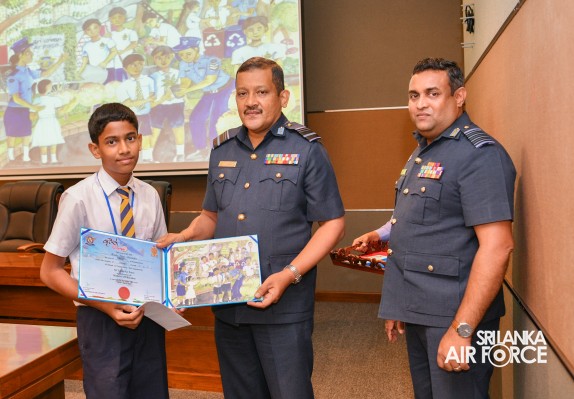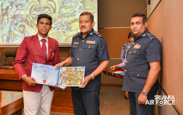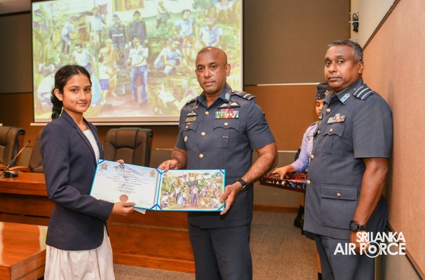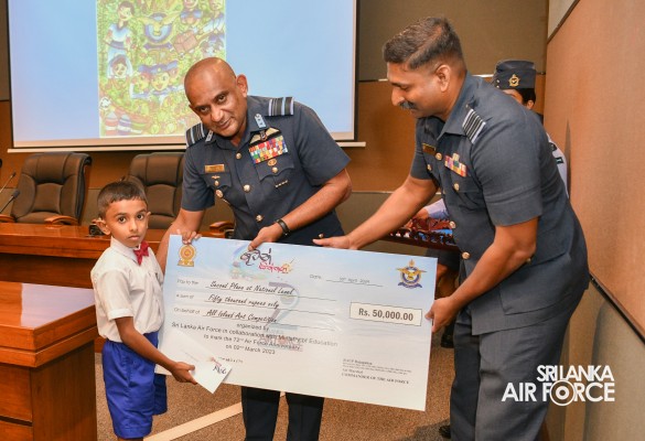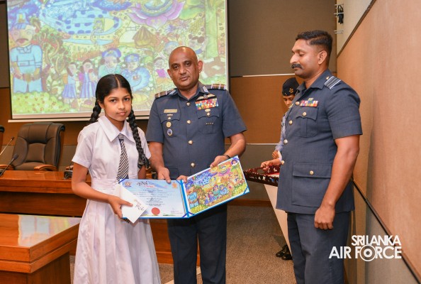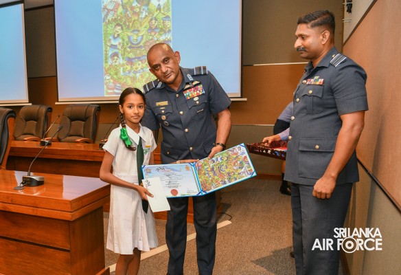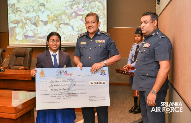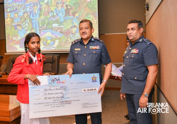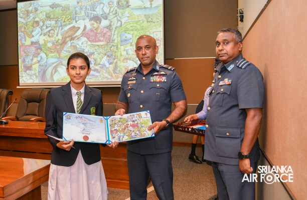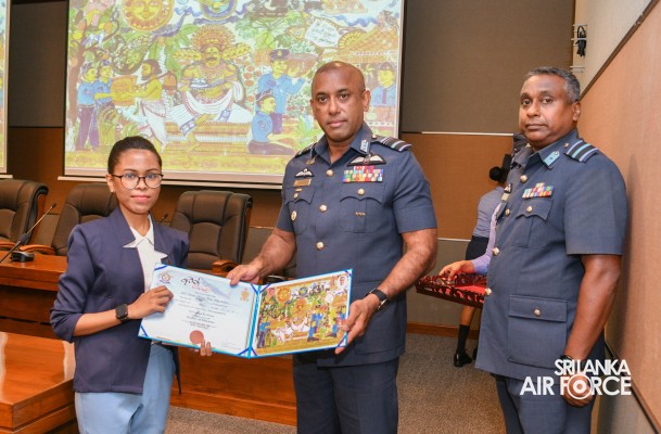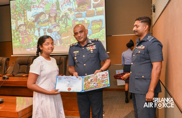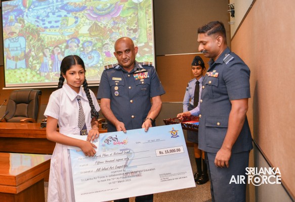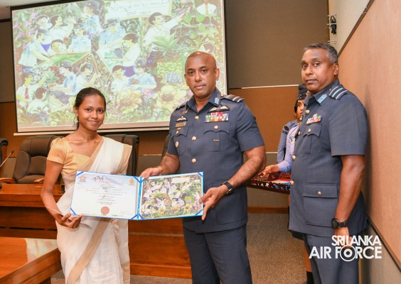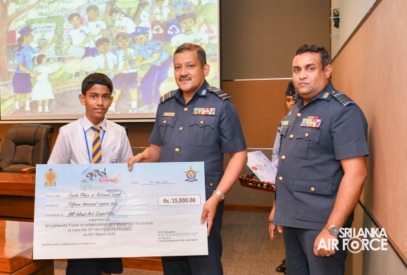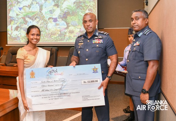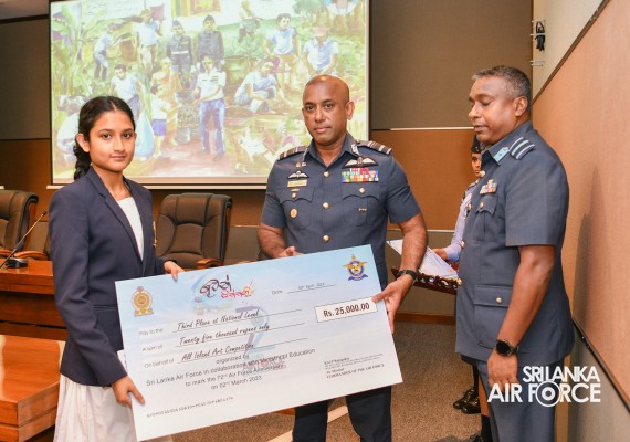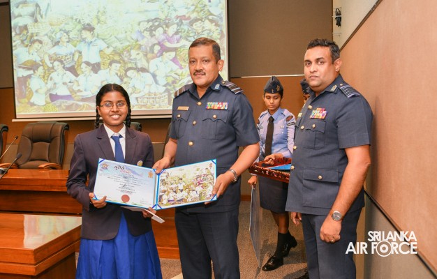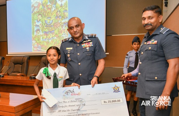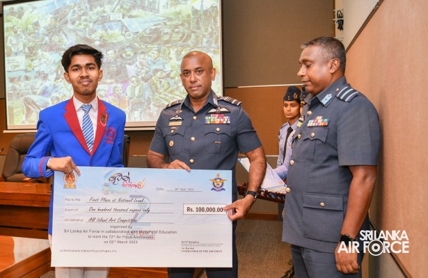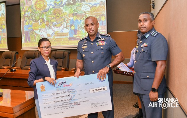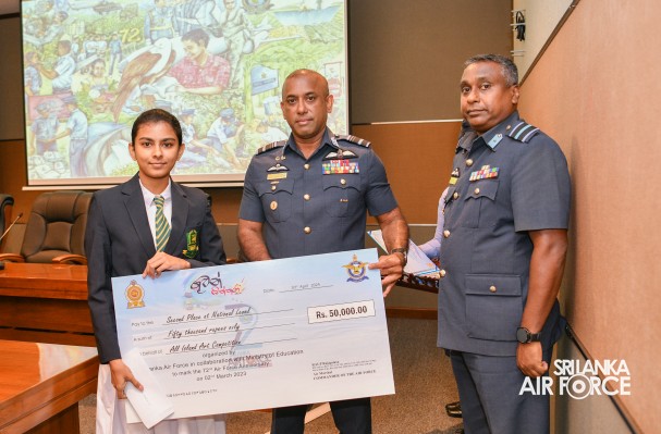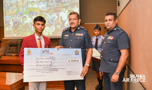The Prize Awarding Ceremony of the SLAF "Guwan Siththara" All Island Art Competition 2023 took place at the General Conference Hall at the Air Force Headquarters today (30 April 2024). The event was held under the guidance of the Commander of the Air Force, Air Marshal Udeni Rajapaksa, marking the significant celebration in line with the 73rd anniversary of the SLAF. The ceremony was graced by the Chief of Staff, Air Vice Marshal Sampath Wickramaratne, as the chief guest. In addition, the Deputy Chief of Staff and the Director Generals representing the Air Force Board of Management also joined the event.