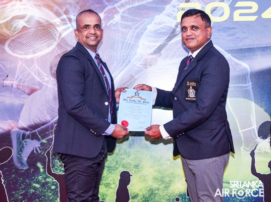 The Awards Ceremony was held at the same venue yesterday (07 May 2024) with the graceful presence of the Director General Construction Engineering, Air Vice Marshal Chandana Geethapriya as the Chief Guest. The Commanding Officer SLAF Station Colombo, the Commanding Officer SLAF Trade Training School Ekala, the Chairman SLAF Tennis, the Director Sports, members of the Air Force Sports Council and other invitees participated in the event.