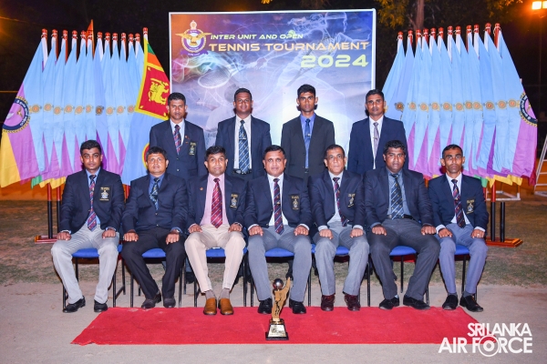 The Tennis Team, SLAF Station Colombo, won the team event and secured the Champion's trophy, while SLAF Academy China Bay emerged as Runner-Up in the Inter-Unit Tennis Tournament 2024.