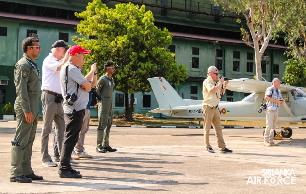 A group of researchers from the British Aviation Research Group in the United Kingdom recently visited Sri Lanka. The delegation, led by Mr. Paul Ashton, comprised aviation enthusiasts specializing in various domains of aviation research, including the evolution of aviation, aircraft structures and sustainable aviation technologies. During their visit, the delegation was able to tour Air Force establishments. This marks the second occasion that the SLAF has hosted visits from foreign aviation veterans, supporting the tourism industry as well.