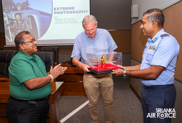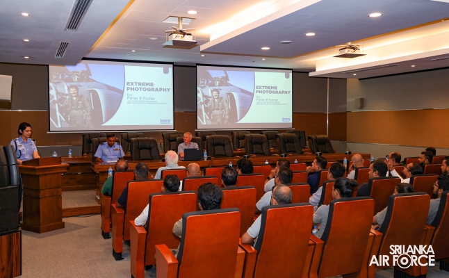 Moreover, the SLAF Media Division hosted a workshop for professional photographers titled "Extreme Photography," which took place as a knowledge-sharing session with a distinguished Air-to-Air Photographer from the British Aviation Research Group, Mr. Peter Foster, at the Air Force Headquarters today (10 May 2024). The Director Media of the SLAF, Group Captain Dushan Wijesinghe, delivered the welcome address, while Mr. Peter Foster shared his invaluable experiences in Air-to-Air Photography.
