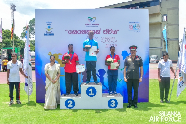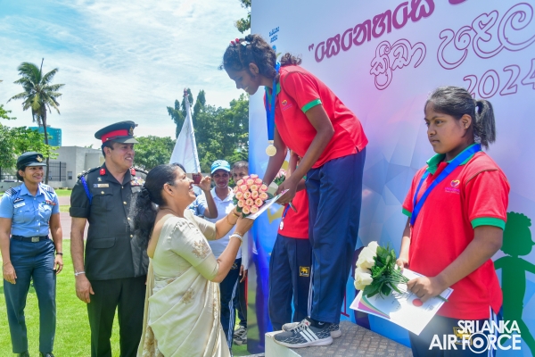 Sri Lanka Air Force Seva Vanitha Unit extended a helping hand to organize “SENEHASE JAWAYA”, the annual sports meet of the “Senehasa” Education Resource Research and Information Centre, which was successfully concluded yesterday (15 May 2024) at the Sugathadasa Stadium in Colombo. The Chairperson of the Sri Lanka Air Force Seva Vanitha Unit, Mrs. Enoka Rajapaksa, graced this occasion as the Chief Guest.