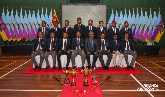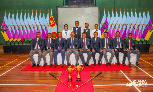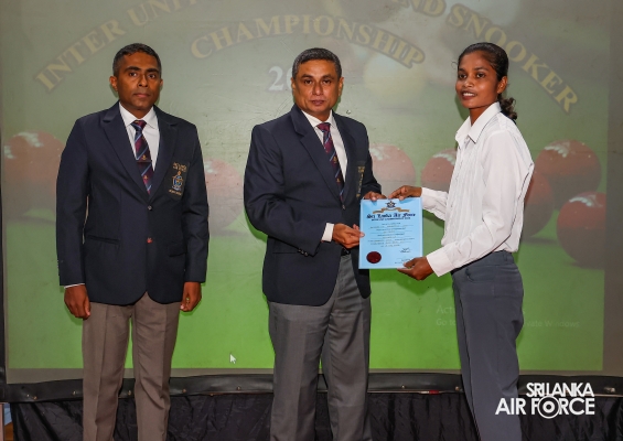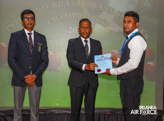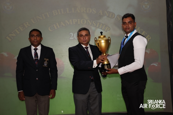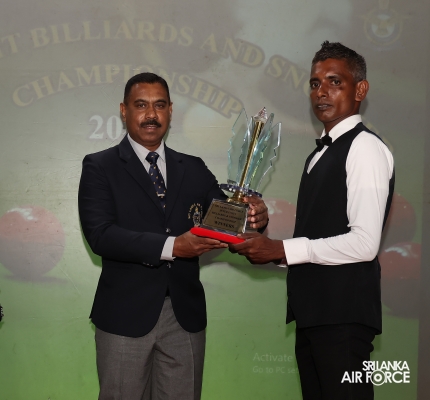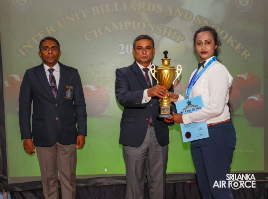 Regiment Formations SLAF Base Katunayake emerged as the Champions whilst Tech Formations SLAF Base Katunayake secured the Runners-up. Leading Aircraftman Kulasinghe MDN from Regiment Formations at SLAF Base Katunayake and Leading Aircraftwoman Weerasinghe WMSH from SLAF Base Higurakgoda secured the Championships of the Billiards Open Men’s and Women’s’ events respectively.