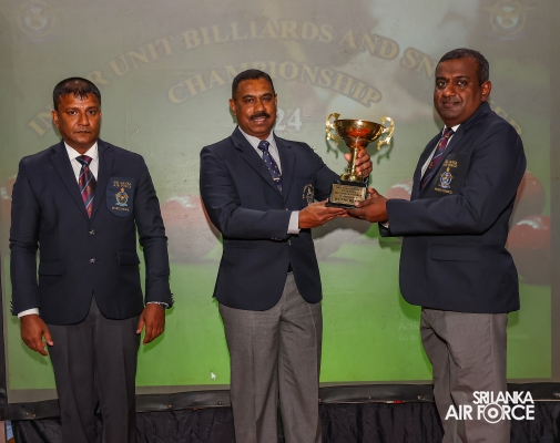 The Inter Unit Billiard and Snooker Championship – 2024 was held at SLAF Base Katunayake from 13 May 2024 to 16 May 2024. The awarding ceremony took place at the Gymnasium SLAF Base Katunayake yesterday (16 May 2024) with the graceful presence of Director General Ground Operations, Air Vice Marshal Chaminda Wickramaratne as the Chief Guest.