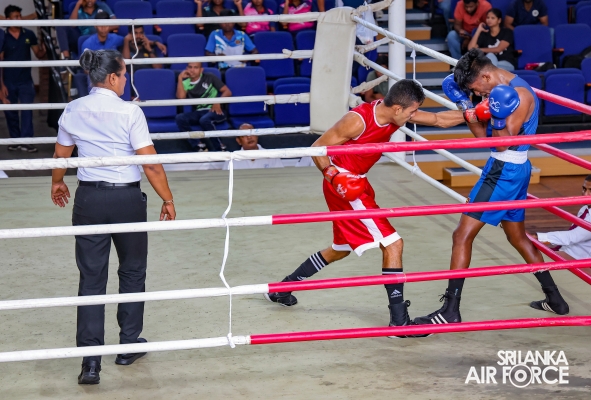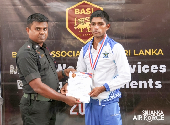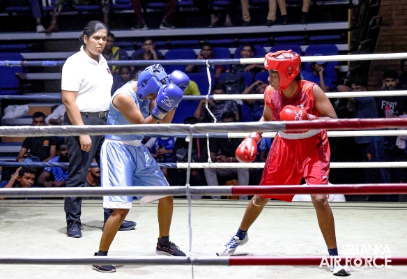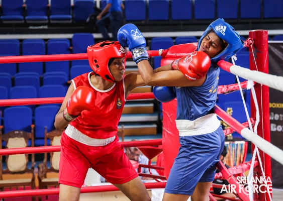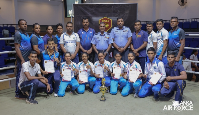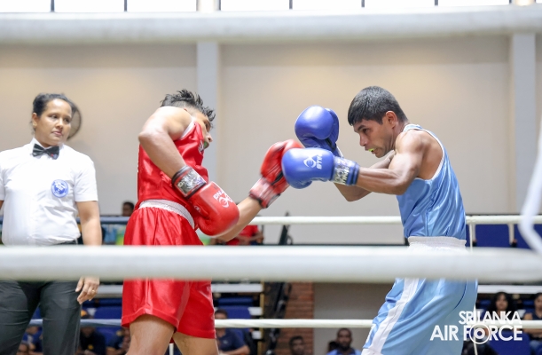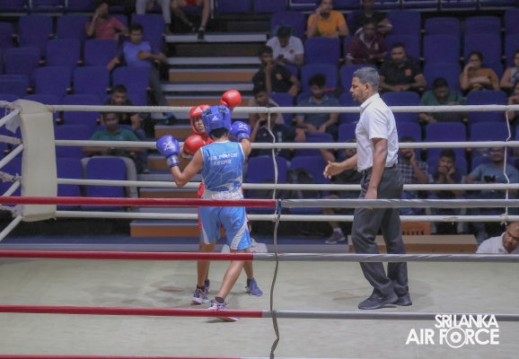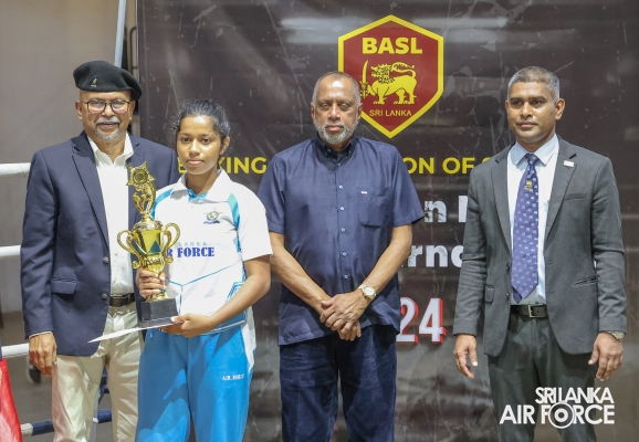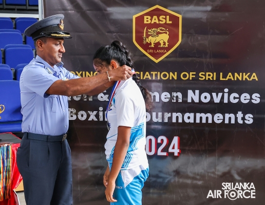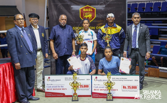 The Boxing Association of Sri Lanka (BASL) Men’s and Women’s Novices Boxing Tournament – 2024 was held from 12 May to 16 May 2024, at the Royal MAS Arena, Royal College Colombo 07. The Sri Lanka Air Force Novices Boxing Team had nine players who participated and displayed outstanding achievements by securing three Gold, two Silver and two Bronze medals. The Aircraftwoman Imesha MWAS has been awarded ‘Best Looser Woman' at the Novices Boxing Tournament. The Chairman SLAF Boxing Team, Group Captain LMCB Nishshanka attended the Awards Ceremony.