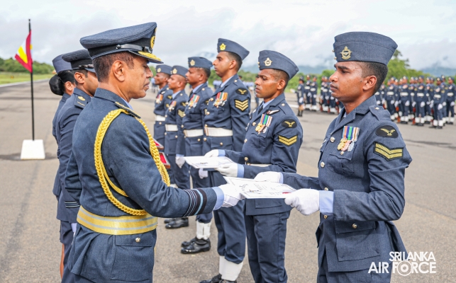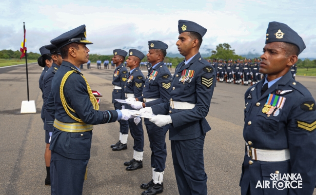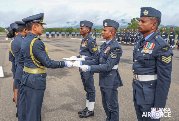 The Commander reviewed the Commander’s Inspection Parade, commanded by the Commanding Officer, Group Captain DSMLK Sugathadasa. Further, the Certificates of Commendation were awarded to the following service personnel in recognition of their meritorious contributions to the Station in particular and to the Air Force in general.