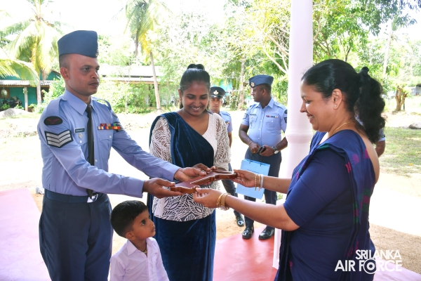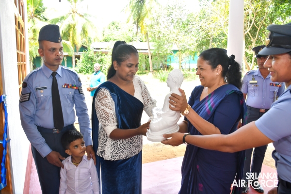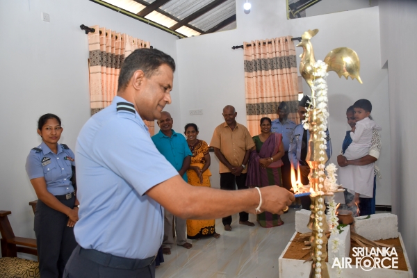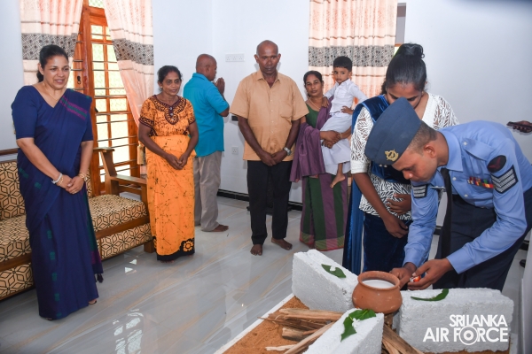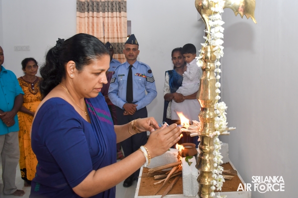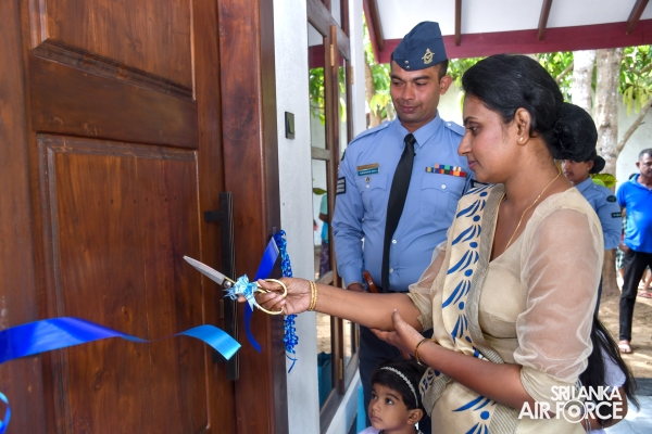 One house was handed over to Flight Sergeant Subasinghe SMCN and the housewarming ceremony was held at Ausadapitiya, Vavuniya. The second house was handed over to Sergeant Kumarasinghe R and the ceremony was held at Thiththagonewa, Kebithigollewa.