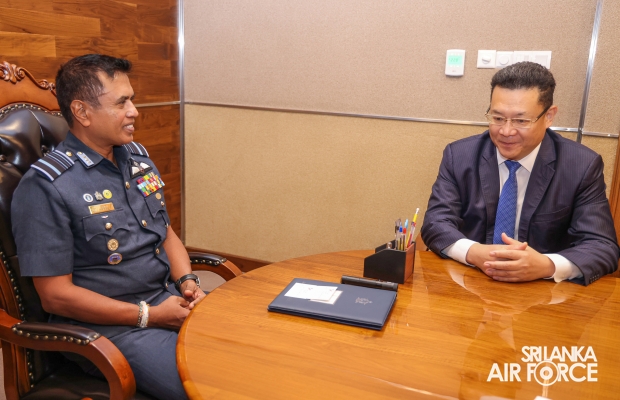 A five-member delegation representing the major defence item supplier NORINCO Company in China and the local representative of NORINCO Company, Diesel & Hydraulic Engineering (Pvt) Ltd, met the Commander of the Air Force, Air Marshal Udeni Rajapaksa, at Air Force Headquarters today (21 May 2024). The delegation was headed by the High-Level Commissioner of Military Trade, Mr. Luo Xiangdong.