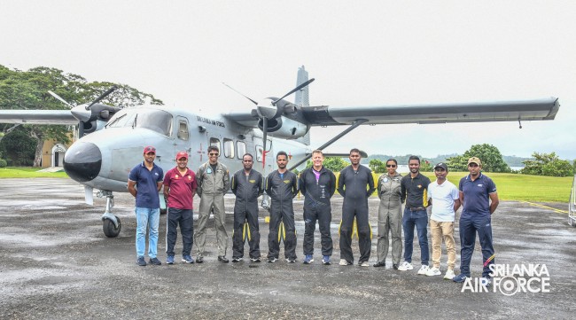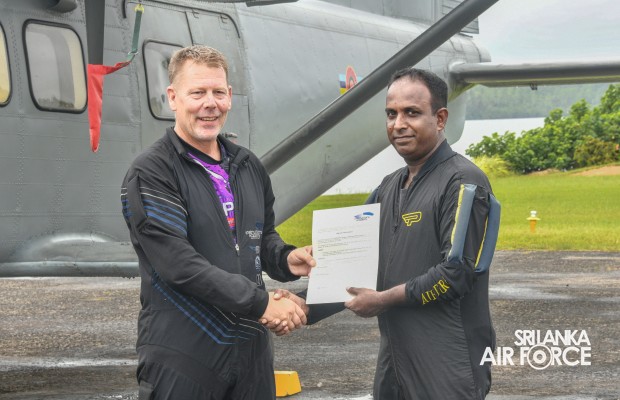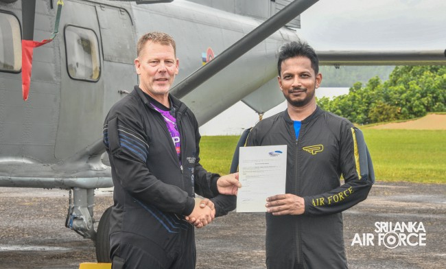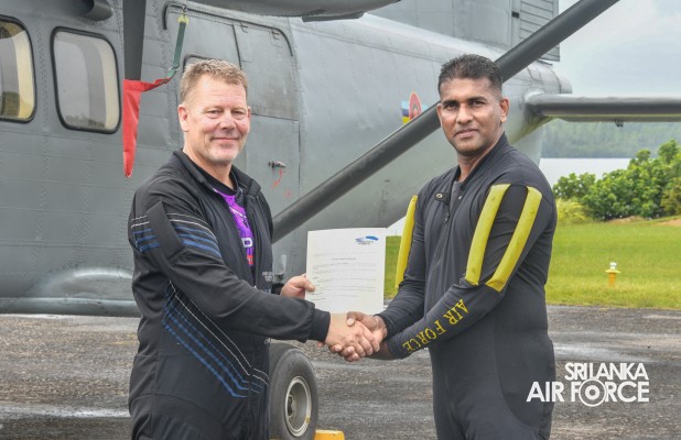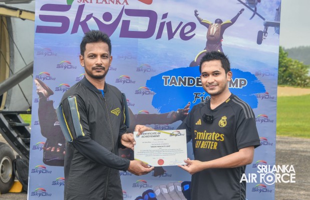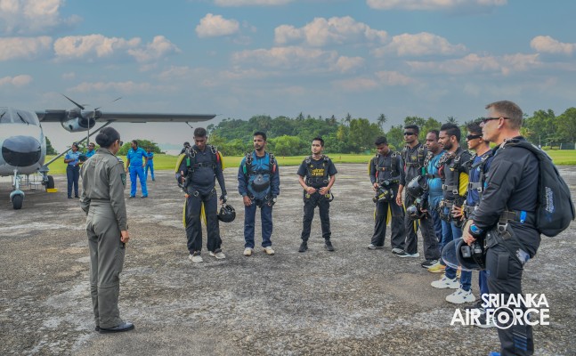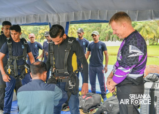 The Tandem Jumps Fiesta, currently taking place against the scenic backdrop of SLAF Station Koggala, features a group of highly qualified tandem jump instructors, including Mr. Marcus Laser from Spain, Group Captain Jagath Godakanda, Wing Commander Vijitha Gomis, and Wing Commander Sumedha Ritigala.