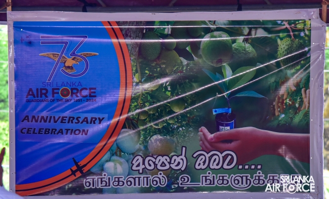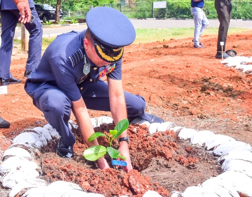 The saplings were arranged by the SLAF Agro Unit, including varieties of Anoda, Guava, Lemon, Rose Apple, Tamarind, Wood Apple, Goraka, Mango, Kohomba, Coconut, Jackfruit, Kubuk, Passion Fruit and more. The programme was successfully conducted with the participation of Director Agriculture and Welfare Projects, Air Commodore Erandika Gunawardhane, Deputy Commandant SLAF Academy China Bay, Group Captain Asela Kuruwita. Further, the Chief Secretary of the Eastern Province, Mr. RMPS Rathnayaka, the Secretary of Agriculture Eastern Province, Mr. IJK Muthubanda and the Provincial Director of Agriculture, Mr. MBA Kalees, were also present for the occasion.