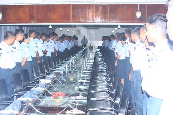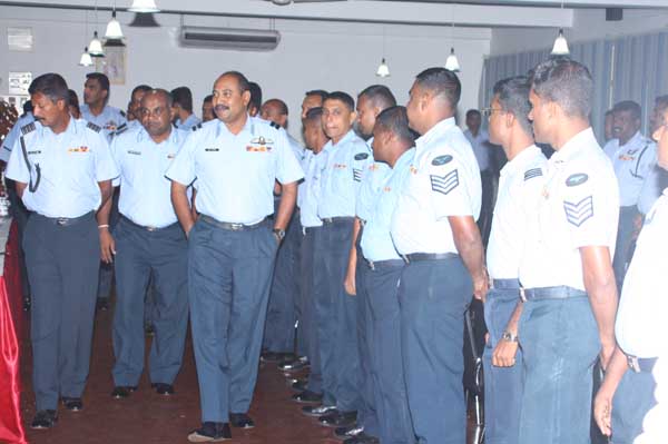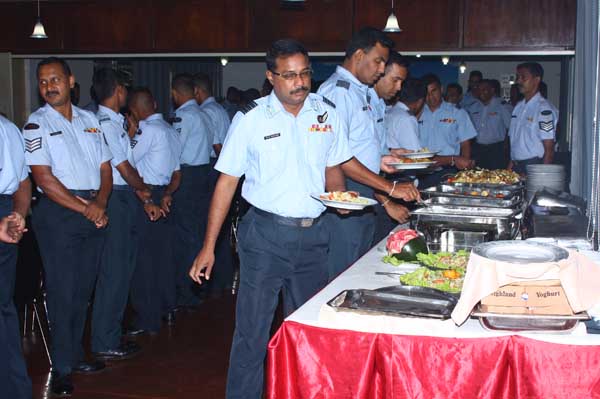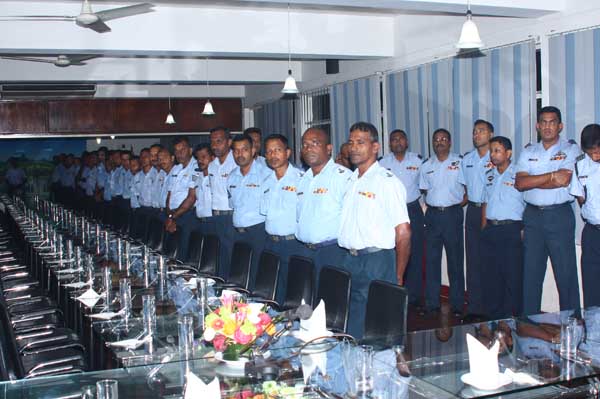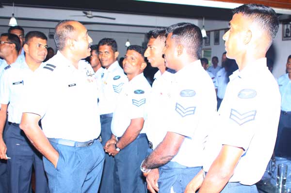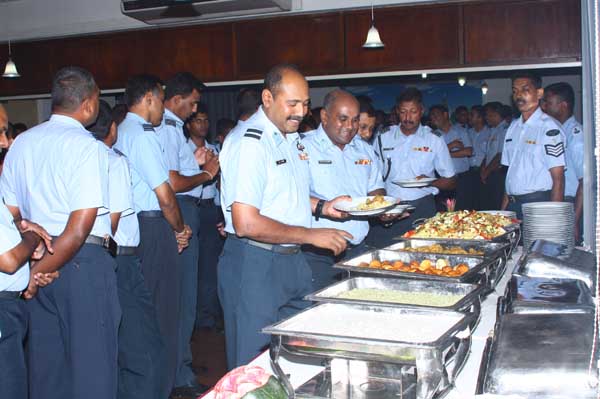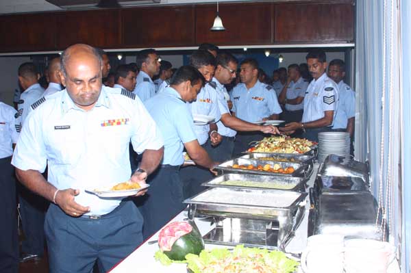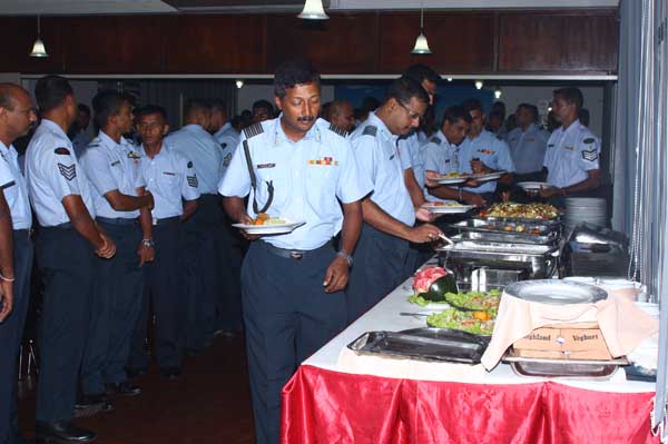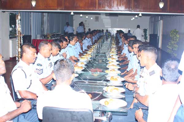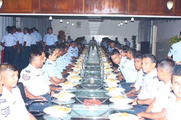 Due to bad weather conditions, the working Parade and recreation activities organized were canceled. The Base Commander Air Commodore Sumangala Dias addressed the Cross section of the servicemen before the all ranks lunch at the Airmen mess.