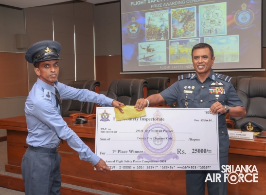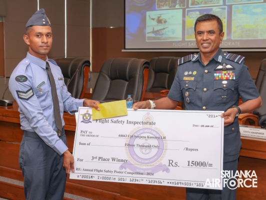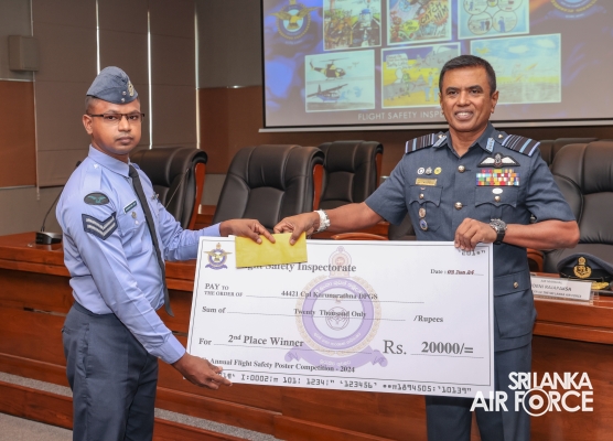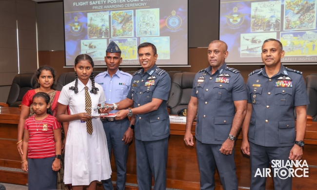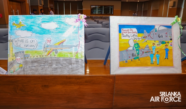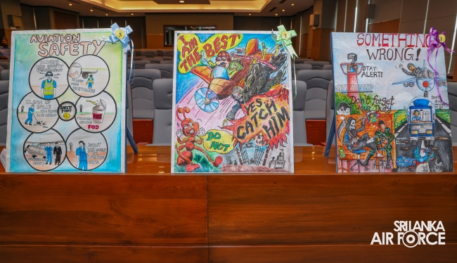 The Annual Flight Safety Poster Competition, organized for the 15th time, was held as part of the 73rd anniversary celebrations with the aim of enhancing flight safety awareness among all ranks of the SLAF. This year's competition introduced a new segment, inviting aviation-enthusiastic schoolchildren to participate in a separate category.