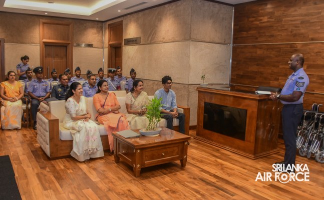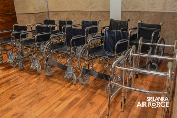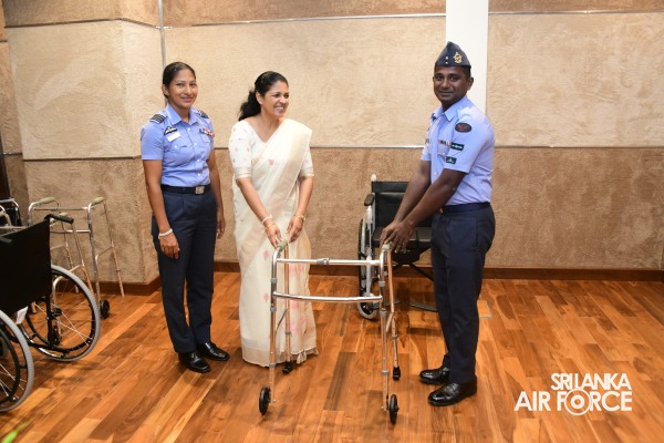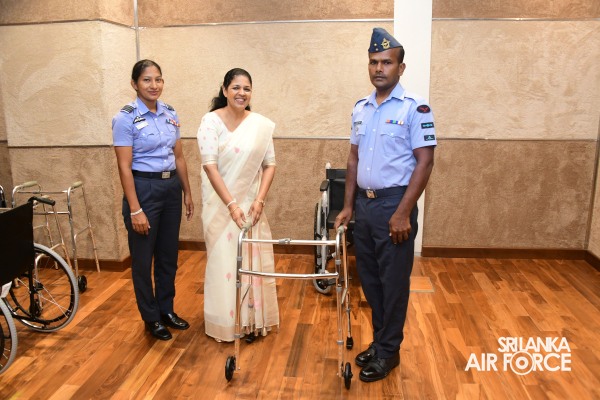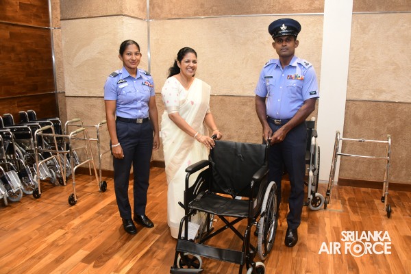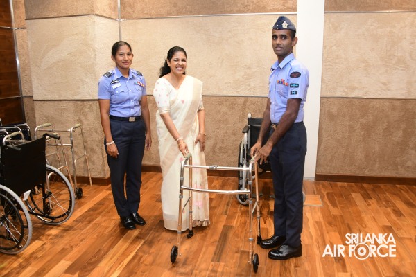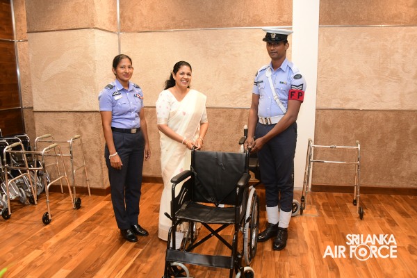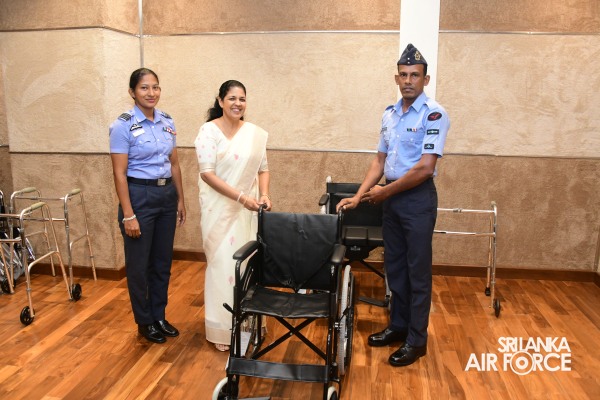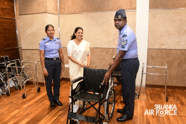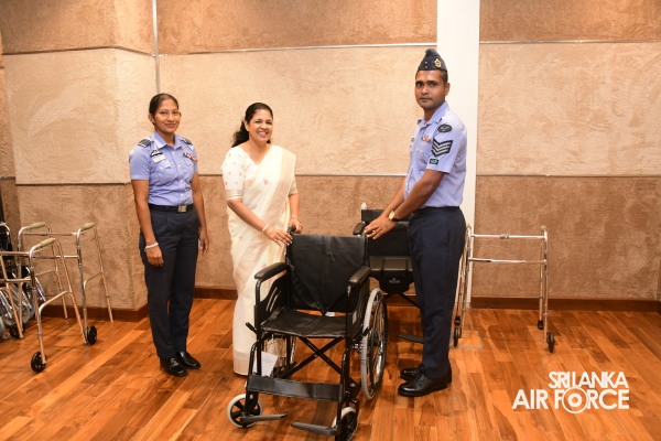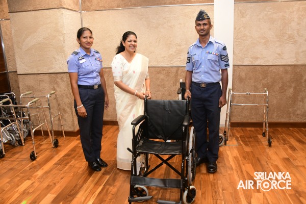 The event aimed to provide mobility aids to the needy family members of SLAF service personnel. Three walkers and seven wheelchairs were donated during the programme. Additionally, a special donation of a commode wheelchair was made to Leading Aircraftman Kumara, who was medically discharged from the service in 2019 following an accident he encountered in 2014. This commode wheelchair was donated in memory of Mr. Kamal Ranathunga by his wife, Mrs. Dilma Ranathunga and their daughter, Miss. Kameesha Ranathunga.