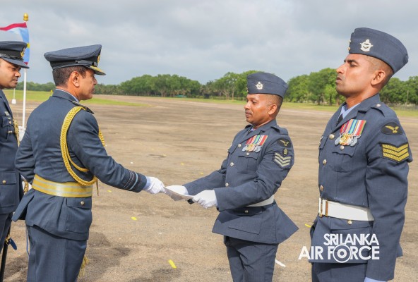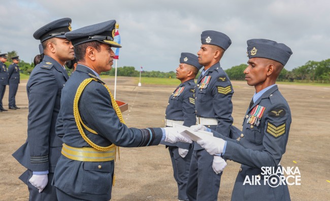 The Commander reviewed the parade, which featured the Air Force Standards and the parade was commanded by the Base Commander SLAF Base Vavuniya, Air Commodore Amitha Jayamaha. Moreover, the Certificates of Commendation were awarded to the following service personnel in recognition of their invaluable contributions to SLAF Base Vavuniya.