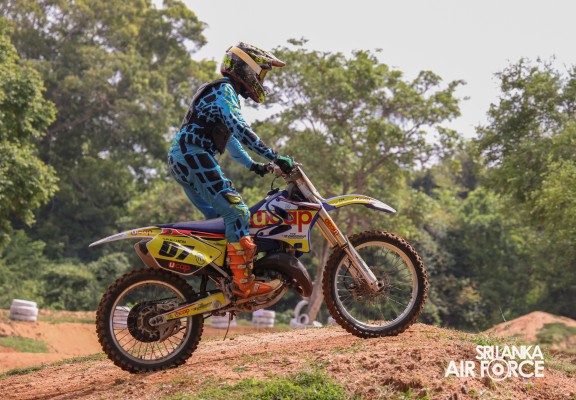 Following the ceremony proceedings, the attendees were treated to a thrilling motocross bike display by the SLAF Motor Racing Pool, showcasing exceptional skills and daring stunts. This display highlighted the talents of the Air Force riders and provided an exhilarating highlight to the day's events.