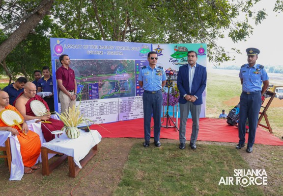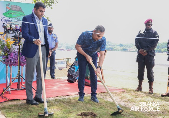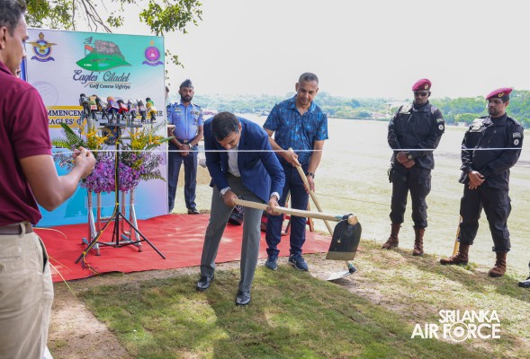 The SLAF hosted a landmark event today (13 June 2024), marking the commencement of the Eagles’ Citadel Golf Course at SLAF Station Sigiriya. The First Sod-Cutting Ceremony was graced by the State Minister of Defence, Hon. Premitha Bandara Tennakoon and attended by the host, the Commander of the Air Force, Air Marshal Udeni Rajapaksa.