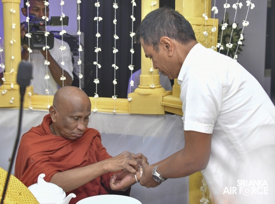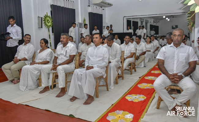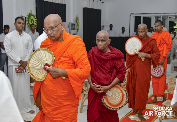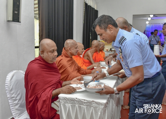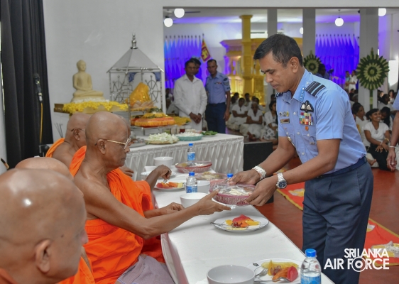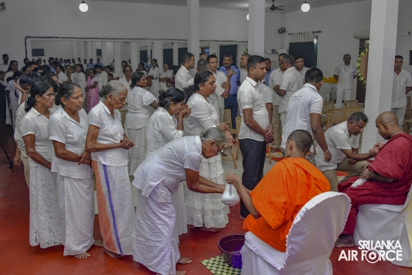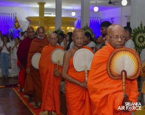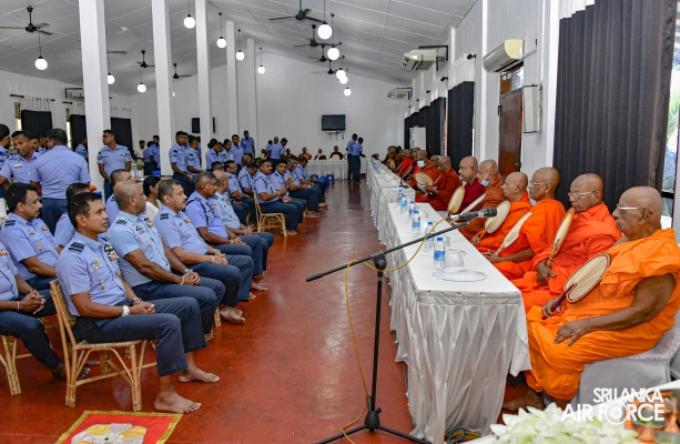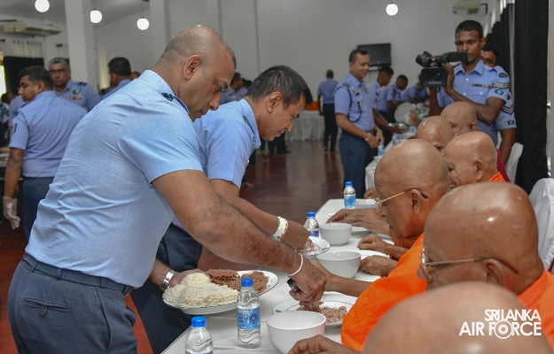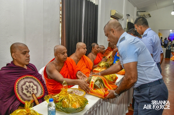 This meritorious event was organized under the supervision of Director General Welfare, Air Vice Marshal Suresh Fernando and coordinated by the Commanding Officer SLAF Trade Training School Ekala, Air Commodore Uditha Piyasena, to invoke blessings on the souls of Fallen War Heroes as well as disabled War Veterans, their living family members, SLAF serving personnel and the entire Nation to have the strength and courage to move forward through these challenging times.