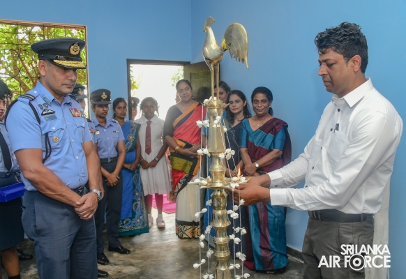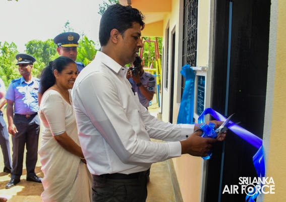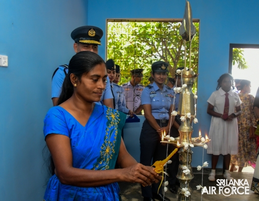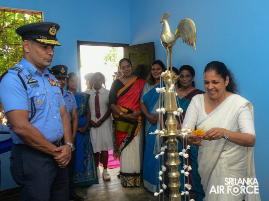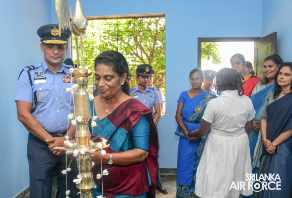In response to a proposal by the Commanding Officer of SLAF Combat Training School Diyatalawa, the construction of a new school building was initiated under the 'Guwan Mithudam' project, supported by the 'Husma Plan' of the SLAF Seva Vanitha Unit and funded by generous well-wishers. The completed school building was officially opened and handed over to the students by Mrs. Enoka Rajapaksa.