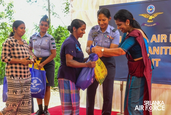 The donation of these ration packs was made possible through the 'Husma Plan' of the SLAF Seva Vanitha Unit, with contributions from the following donors, well-wishers and business corporations: