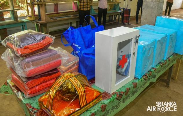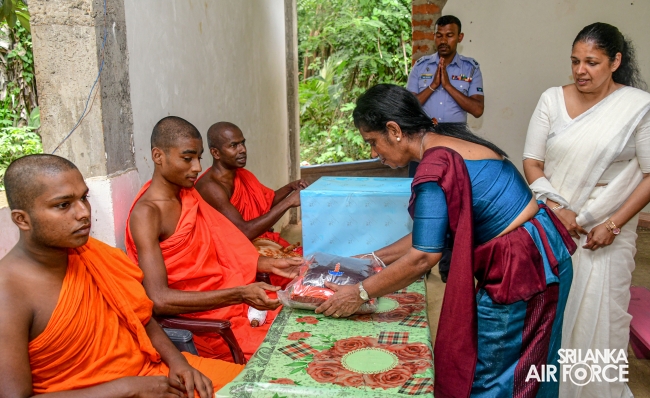 The donation of 20 dry ration packs, Pirikara items (Siwuru), a first aid box with medicines, stationery, Cleaning supplies and electrical items was made possible through the 'Husma Plan' of the SLAF Seva Vanitha Unit, with contributions from the following donors, well-wishers and business corporations: