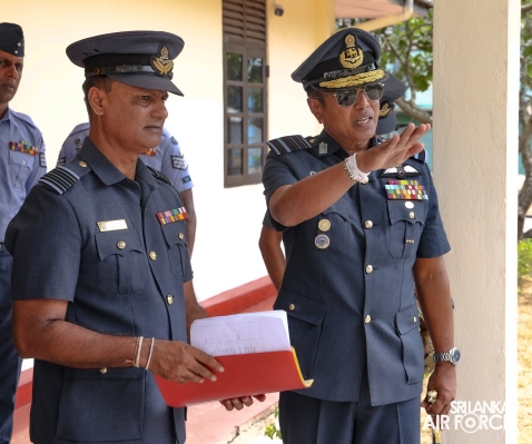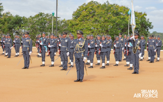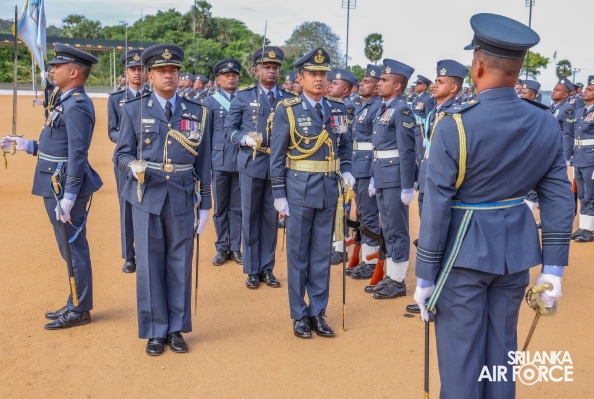 The Commander of the Air Force, Air Marshal Udeni Rajapaksa, conducted the Commander's Inspection of Sri Lanka Air Force Academy in China Bay today (27 June 2024). Prior to the inspection proper, the Commander reviewed the Commander's Inspection Parade commanded by the Commandant of SLAF Academy China Bay, Air Commodore RADTM Weeraratne.