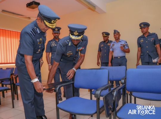Addressing all personnel of the Academy at the conclusion of the inspection, the Commander expressed his appreciation for their hard work in maintaining the Academy, up to the required standards. During his address, the Commander reminded that this academy has played a pivotal role in producing professional military personnel and quality aviation professionals to serve the Sri Lanka Air Force. In addition, the Commander expressed his future visions for creating the SLAF further technologically advanced in order to elevate the capabilities and operational values of the SLAF and its service personnel.