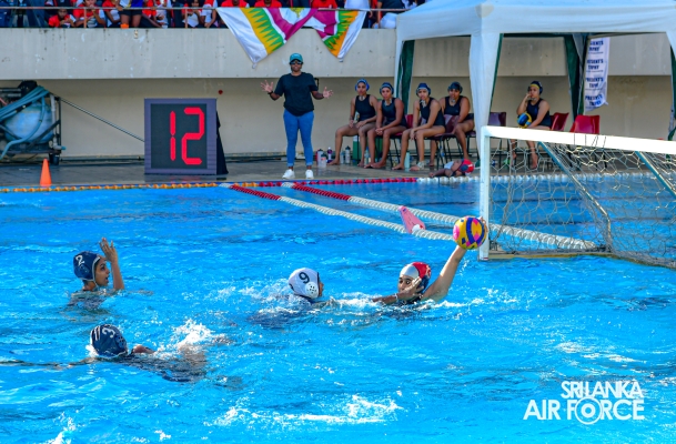The President’s Trophy 2024 Organized by the National Youth Services Council in collaboration with the Royal College Union Aquatic Club (RCUAC) and Youth Vision 2048 took place from 29 June to 30 June 2024, at the Sugathadasa Swimming Pool Complex. The Air Force Men’s team claimed the title of President’s Trophy in the Open Men’s category with a score of 10 to 9 in the final against Old Thomian’s Swimming Club (OTSC), while the Air Force Women’s team also won the title of President’s Trophy in the Open Women’s category with a score of 11 to 8 in the final against Old Thomian’s Swimming Club (OTSC). Open Men’s Category Flying Officer Isiwaruna De Silva and Open Women’s Category Leading Aircraftwomen De Silva KDA were recognized as the ‘Most Valuable Players’ of the tournament.