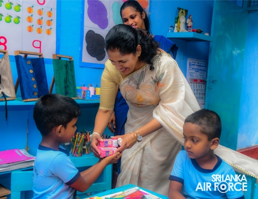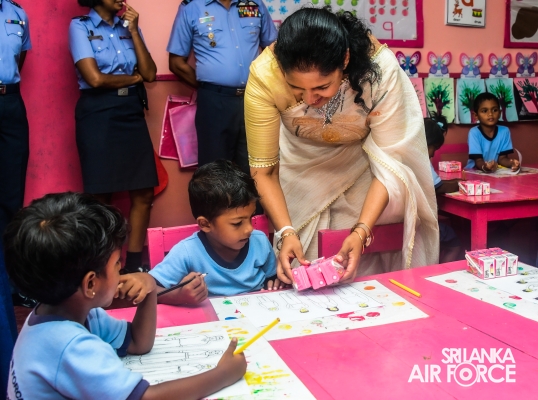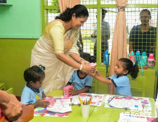 The ceremonial distribution of “Sunquick” beverage packets was done by the Chairperson of SLAF Seva Vanitha Unit, Mrs. Enoka Rajapaksa, today (04th July 2024) among preschool children of SLAF Base Ratmalana.