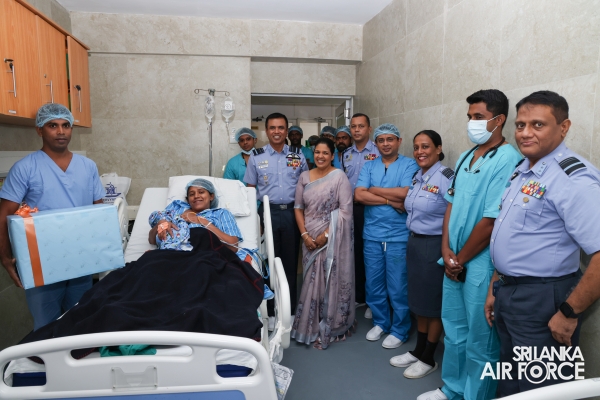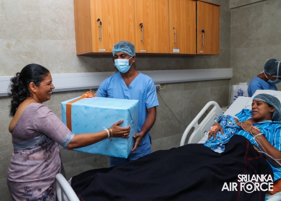 In a gesture of support and encouragement, the Commander of the Air Force, Air Marshal Udeni Rajapaksa, together with the Chairperson SLAF Seva Vanitha Unit, Mrs. Enoka Rajapaksa, visited the hospital to see the mother and her newborn baby.