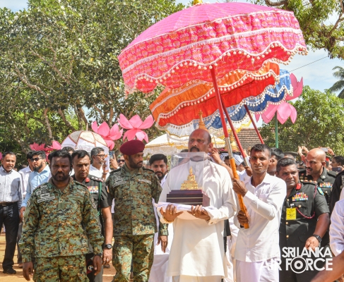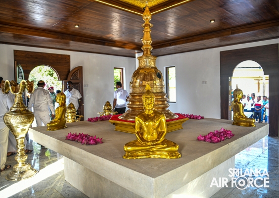 In addition to the main ceremonial proceedings, the 'Ginihalgeya' and the 'Dhathu Mandiraya,' both located in Deegawapiya, were declared open by the Secretary to the Ministry of Defence, General Kamal Guneratne (Retd.), early this morning, on the invitation of the Commander of the Air Force. The 'Ginihalgeya' was constructed with the labour assistance of the Sri Lanka Air Force and Navy, while the 'Dhathu Mandiraya' was built entirely by the Sri Lanka Air Force.
