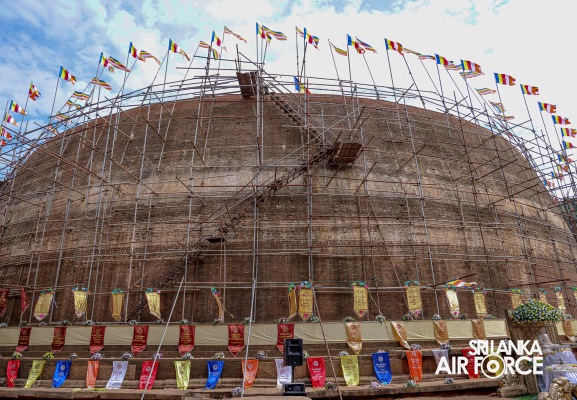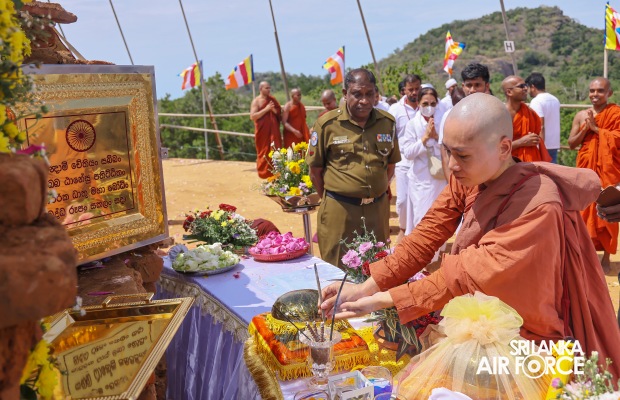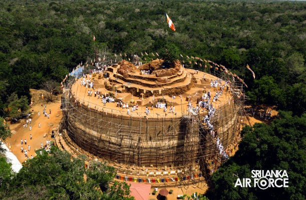 The SLAF undertook the restoration of Nilagiri Maha Seya, located in Lahugala, following instructions from the Ministry of Defence. This situates 108 kilometres from SLAF Station Ampara and 22 kilometres from SLAF Detachment Panama, is surrounded by the dense jungles of Lahugala National Park and is part of the Magul Maha Viharaya Lahugala. Recognized by the Archaeological Department as the largest stupa in the Eastern Province, it dates back to the 3rd century BC, standing at a height of 215 feet and a width of 104 feet.