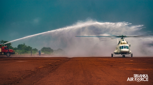 To mark the occasion, a traditional water salute was performed at Bria airfield to officially welcome the SMH 581 Mi-17 V-5 helicopter to the 9th SLAF Aviation Contingent. Following its arrival, the helicopter was ferried to the SLAF Aviation Contingent Bria after completing a thorough assembly process, ground runs and air tests in Bangui. Moreover, it was inducted into the Multidimensional Integrated Stabilization Mission in the Central African Republic (MINUSCA) services following a series of rigorous inspections and audits.