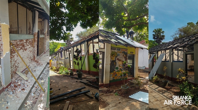 In support of this significant endeavour, 23 skilled airmen from the Civil Engineering Wing at SLAF Base Katunayake were attached to provide labour assistance. The project was supervised by the Project Officer, Squadron Leader Cosmo Ravindranath under the directives of the Director General Construction Engineering, Air Vice Marshal Chandana Geethapriya. The reconstruction project was initiated following a thorough evaluation of the damage. The endeavour included the renovation of seven buildings, the refurbishment of a washroom complex and the construction of a new assembly area, vehicle park, English room, children's park and main stage. All renovations and construction were executed in compliance with safety standards to ensure a conducive learning environment.